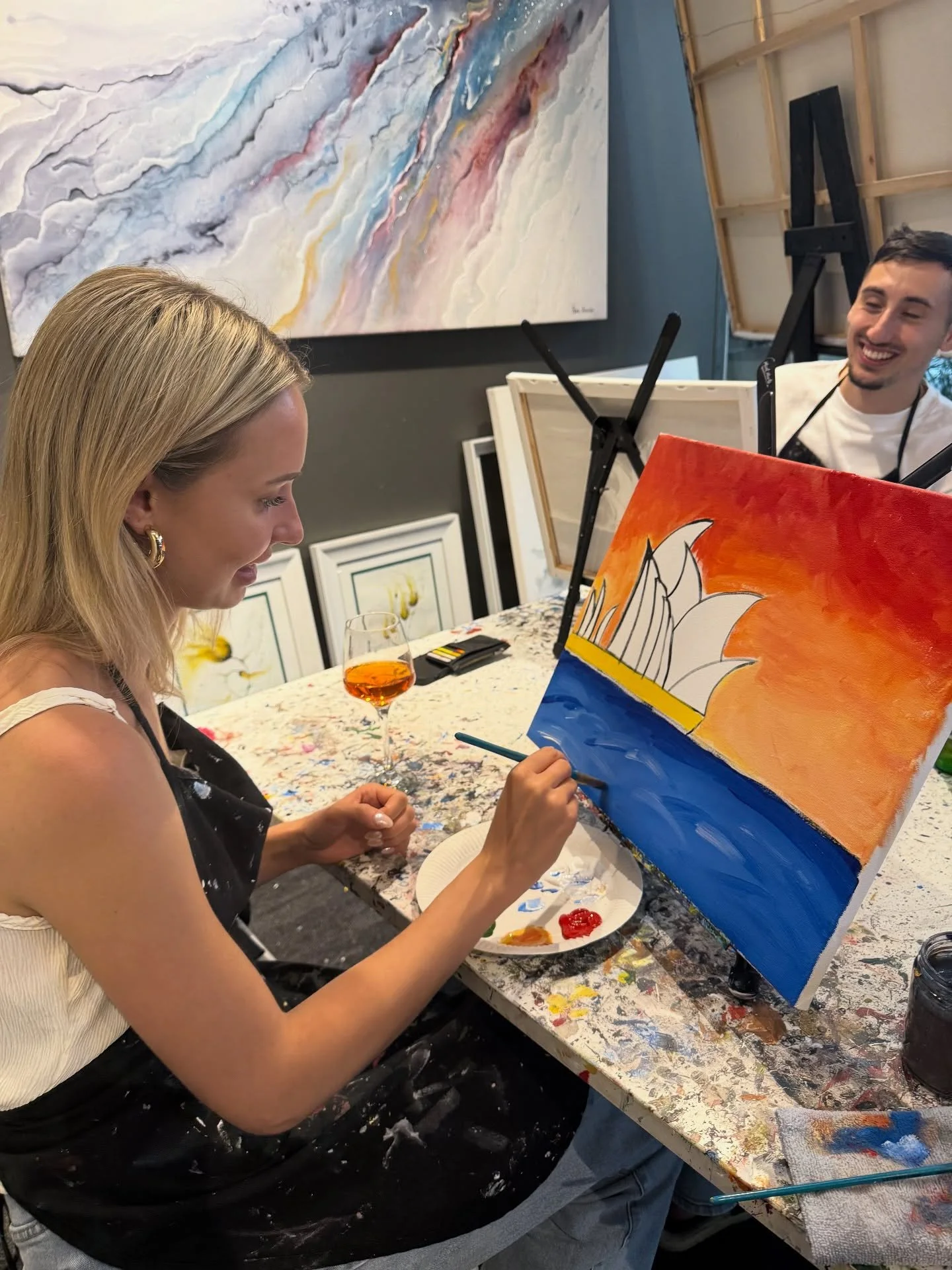 Meet like-minded creatives and play with colour at Monet and Moscato's paint and sip class in Crows Nest.